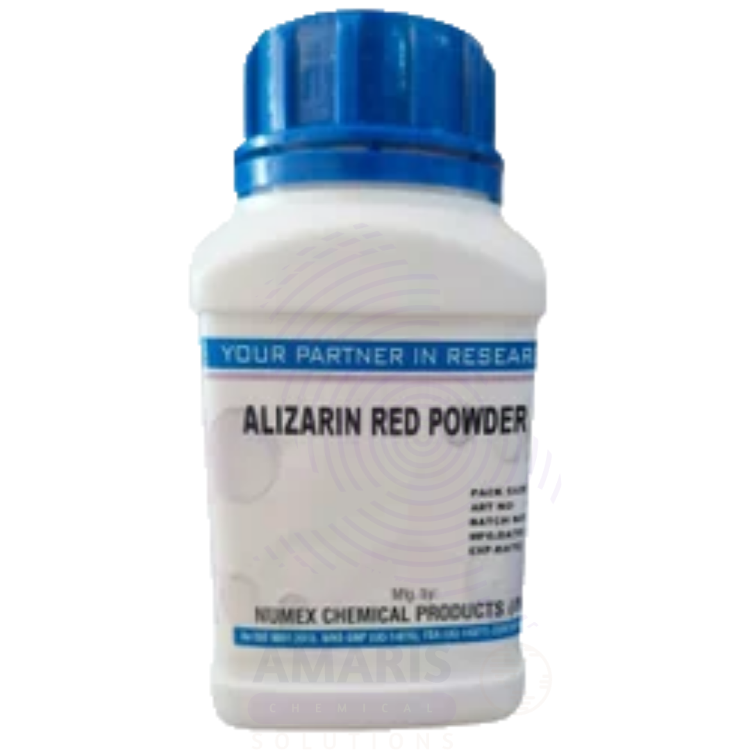 Alizarin Extra Pure is a high-grade anthraquinone-based dye, presented as a reddish-brown crystalline powder, renowned for its vivid coloration and strong affinity for metal ions. It is primarily used in analytical chemistry as a complexometric indicator, especially for detecting aluminum, calcium, and other metal ions through color change. Due to its exceptional purity, it is also employed in histological staining, textile research, and pigment synthesis where precision and consistency are critical. Alizarin Extra Pure offers excellent stability and intense coloration, making it ideal for scientific, educational, and specialized industrial applications. Proper storage in a cool, dry environment is essential to maintain its effectiveness and prevent degradation.