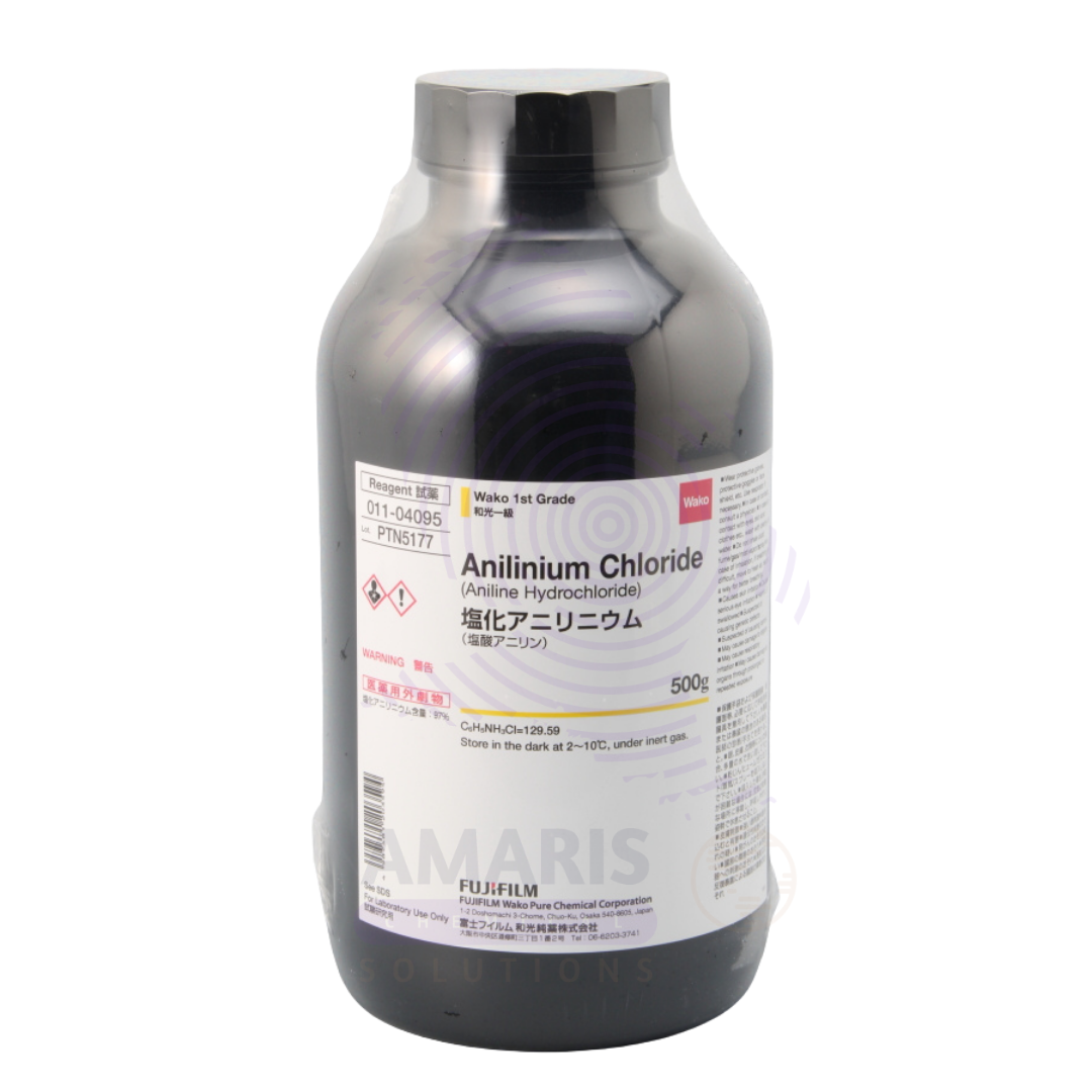 Anilium Chloride Extra Pure is a high-purity, white to off-white crystalline salt formed from aniline and hydrochloric acid, commonly used in laboratory chemistry for organic synthesis and analytical applications. It serves as a stable, water-soluble source of the anilinium ion, useful in studies of aromatic amines, protonation reactions, and acid-base equilibria. In synthetic chemistry, it acts as an intermediate in the preparation of dyes, pharmaceuticals, and polymer additives. The extra pure grade ensures minimal impurities, making it suitable for sensitive experimental procedures requiring high precision. It should be stored in a tightly sealed container in a cool, dry place to maintain stability and prevent degradation.