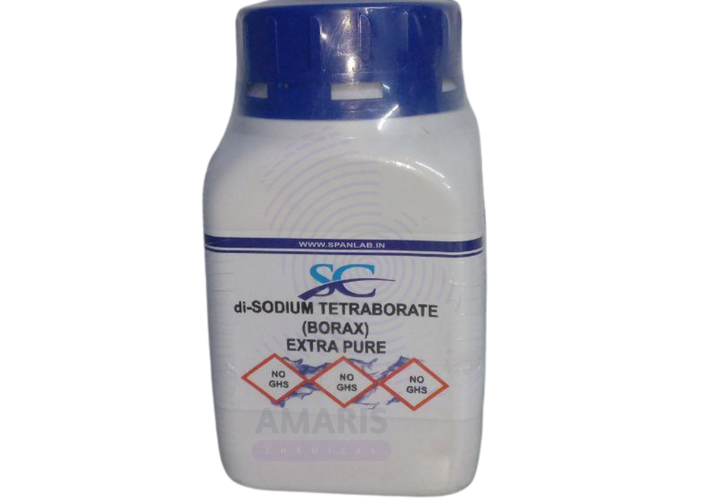 Di-sodium Tetraborate Borax Extra Pure is a high-purity boron compound widely used in laboratory applications for its buffering, emulsifying, and fluxing properties. In analytical chemistry, it serves as a reagent in qualitative and quantitative analysis, particularly in flame tests and as a flux in the preparation of glass beads for spectroscopy. Its buffering capacity is valuable in maintaining pH stability in various solutions, while its detergent-like action supports cleaning and sample preparation. This extra pure grade ensures minimal contaminants, making it ideal for precision work in research, teaching, and industrial laboratories. Store in a cool, dry environment in a well-sealed container.