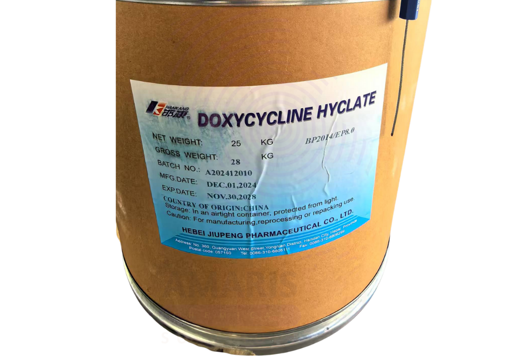 Doxycycline Hyclate BP is a broad-spectrum, semisynthetic tetracycline-class antibiotic available as the hemihydrate salt form of doxycycline. It is widely used in pharmaceutical formulations due to its high bioavailability, broad antibacterial activity, and favorable pharmacokinetic profile. The compound exhibits bacteriostatic action by inhibiting protein synthesis in susceptible bacteria, making it effective against a wide range of Gram-positive and Gram-negative organisms as well as atypical pathogens. It is typically supplied as a fine, white to off-white crystalline powder soluble in water and suitable for oral and parenteral dosage forms.