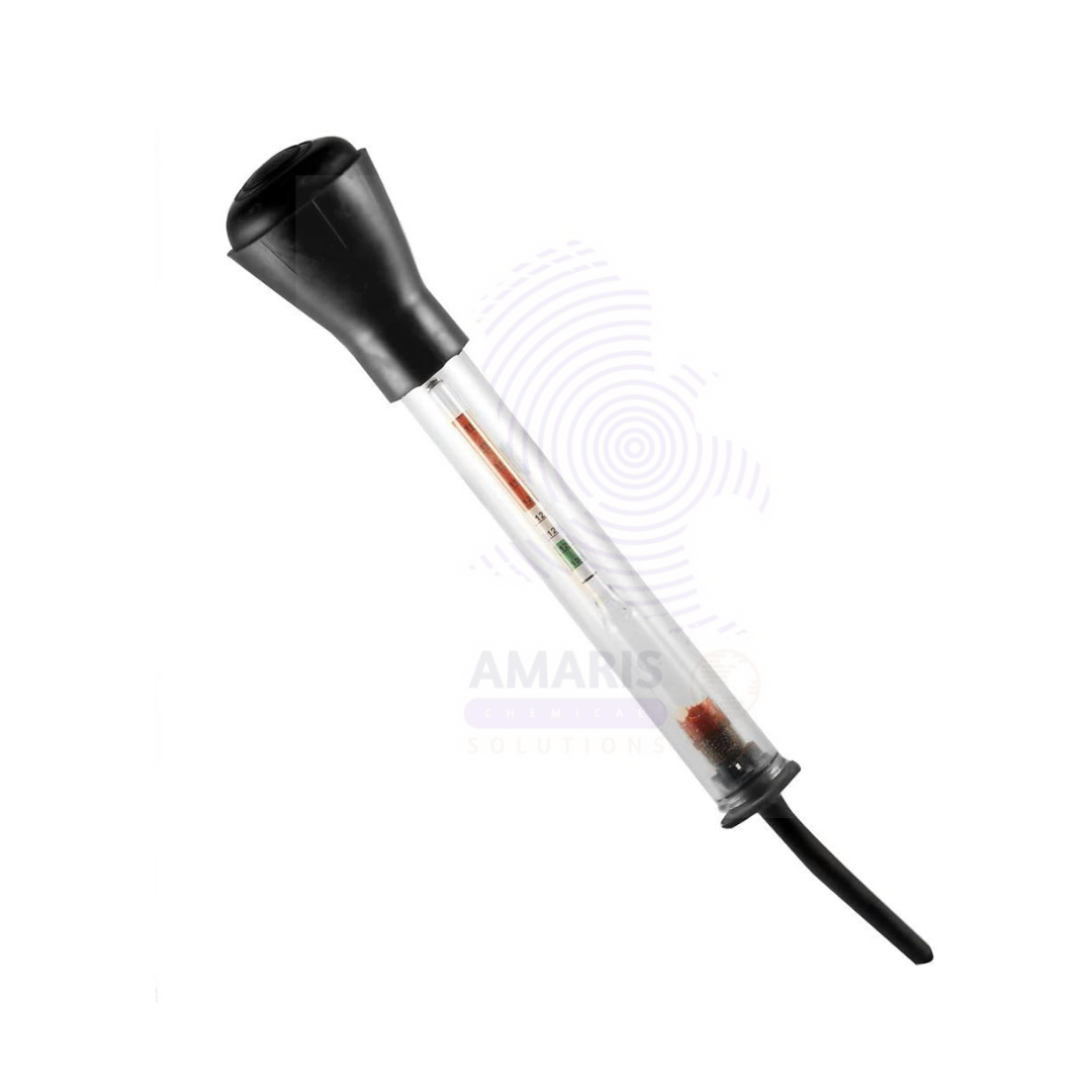 Hydrometer Simple Battery Tester is a compact, user-friendly device designed to measure the specific gravity of electrolyte solutions in lead-acid batteries. It consists of a transparent body, a suction bulb, and a calibrated float indicator that shows the state of battery charge based on electrolyte density. This simple hydrometer provides a fast and visual way to assess the health and charge level of automotive, industrial, or backup power batteries. Constructed from chemically resistant plastic or glass, it is durable, portable, and ideal for both professional and personal battery maintenance applications.