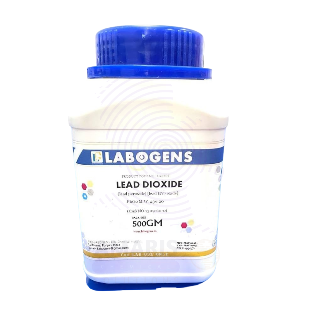Lead Dioxide Extra Pure is a dark brown or black crystalline powder with the chemical formula PbO₂, recognized for its strong oxidizing properties and high purity suitable for laboratory-grade applications. This compound is primarily used in electrochemical experiments, oxidation reactions, and battery research, especially in the development and maintenance of lead-acid batteries where it functions as the active material on the positive plate. In analytical chemistry, it is employed as an oxidizing agent and for synthesizing other lead compounds. Its stability and performance under controlled conditions make it valuable for advanced scientific research and industrial formulation trials. Due to its toxic and environmentally hazardous nature, strict safety protocols are necessary during handling and disposal.
