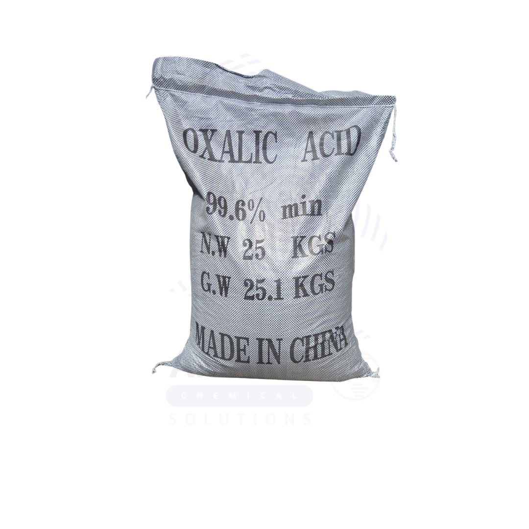Oxalic Acid is a naturally occurring dicarboxylic acid widely used as a powerful organic acid in various industrial, cleaning, and chemical processes. It appears as a white crystalline solid and is soluble in water. Oxalic Acid is valued for its effectiveness in metal cleaning, bleaching, and as a chelating agent. Packaged in 25kg bags, it is suitable for both industrial and laboratory use.