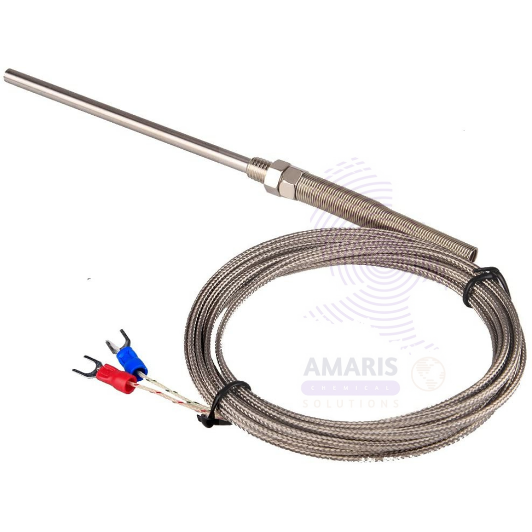 A Thermocouple is a temperature measurement device consisting of two dissimilar metal wires joined at one end, creating a junction where a voltage is generated in response to temperature changes. This voltage can be interpreted by a measuring instrument to determine temperature accurately. Thermocouples are widely used in laboratories, industrial processes, and scientific research due to their wide temperature range, durability, and rapid response time. They are essential for precise thermal monitoring and control in experiments involving heating, cooling, and thermal reactions.