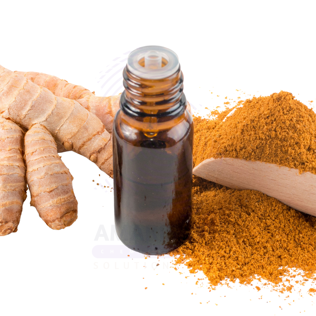 Turmeric Oil is an essential oil extracted from the rhizomes of the turmeric plant (Curcuma longa) through steam distillation. Known for its warm, spicy, and earthy aroma, turmeric oil is highly valued for its potent anti-inflammatory, antioxidant, and antimicrobial properties. It has a rich golden-yellow color and is widely used in cosmetic formulations, traditional medicine, aromatherapy, and natural personal care products. The oil contains bioactive compounds such as turmerone, which contribute to its therapeutic and preservative qualities. Turmeric oil is also used in flavoring and fragrance applications, as well as in natural cleaning products for its antimicrobial benefits.