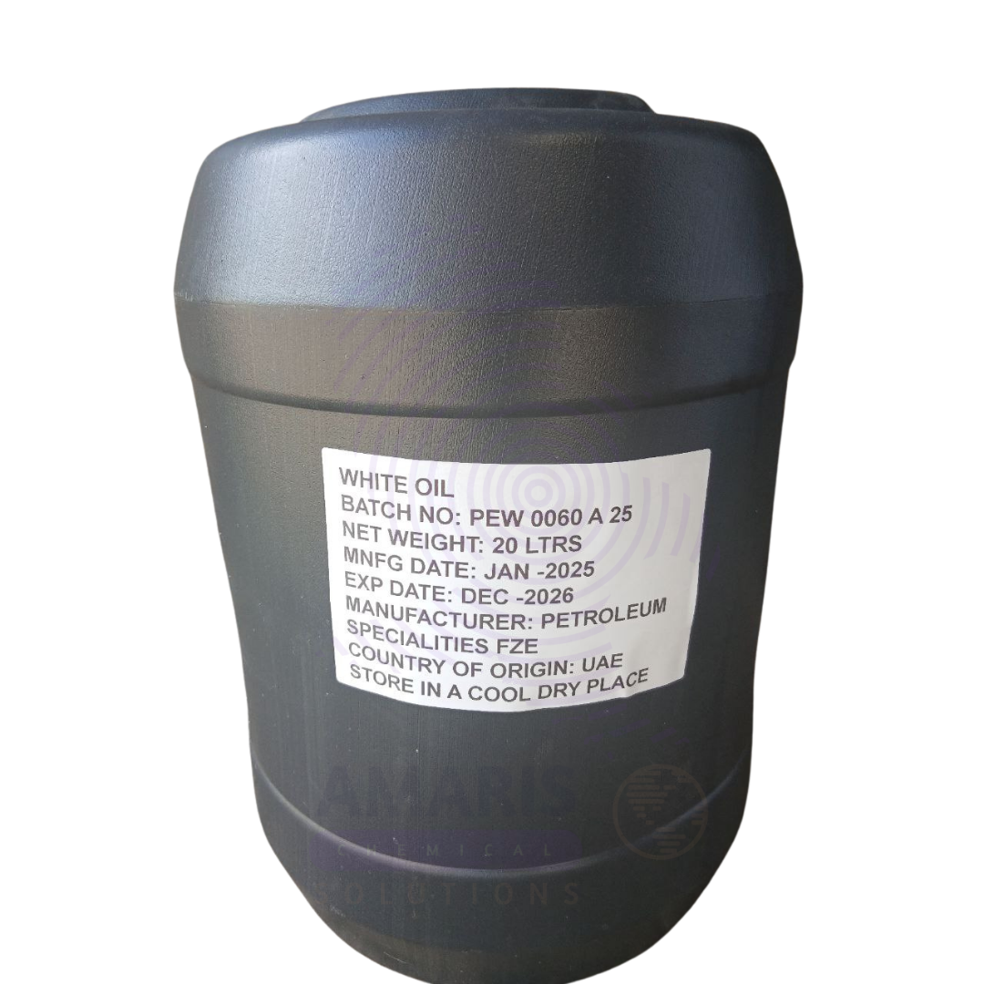 White Oil, also known as Mineral Oil or Liquid Paraffin, is a highly refined, clear, odorless, and tasteless petroleum-derived oil. It is composed of saturated aliphatic hydrocarbons and is available in various viscosity grades depending on the intended application. The product is extensively purified to remove aromatic hydrocarbons, sulfur compounds, and other impurities, making it suitable for use in personal care, pharmaceutical, food, and industrial applications. White Oil is prized for its excellent lubricity, moisture barrier function, chemical stability, and non-comedogenic properties.